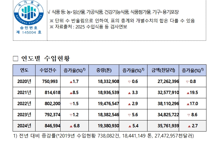 * 수입 건수 (‘20년) 75만건 → (’22년) 80.2만건 → (’24년) 84.6만건