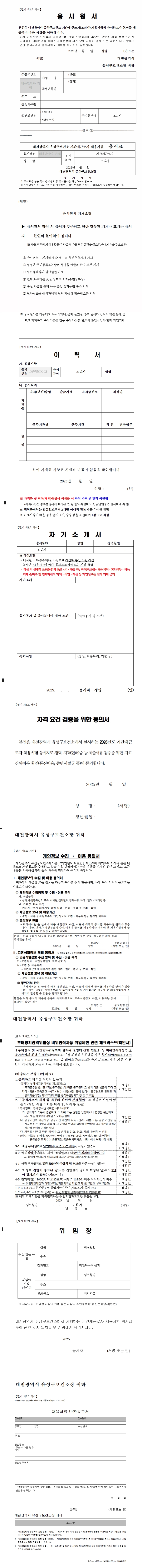 2026년도 대전광역시 유성구보건소 기간제근로자(조리사) 채용 공고 아래 양식은 축약된 견본 양식입니다 신문사 편집상 축약합니다 반드시 별도의 양식으로 제출하셔야 합니다 0 0 월드타임스 월드타임스 sun8235050@naver.com 월드타임스의 기사 더보기 저작권자 ⓒ 월드타임스, 무단 전재 및 재배포 금지