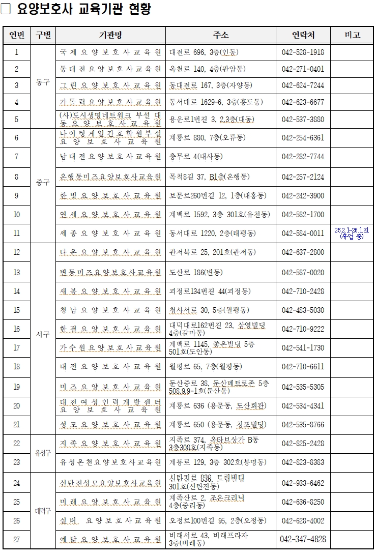 ○ 요양보호사 교육기관 사업계획 등 변경사항 적정성 검토: 연중