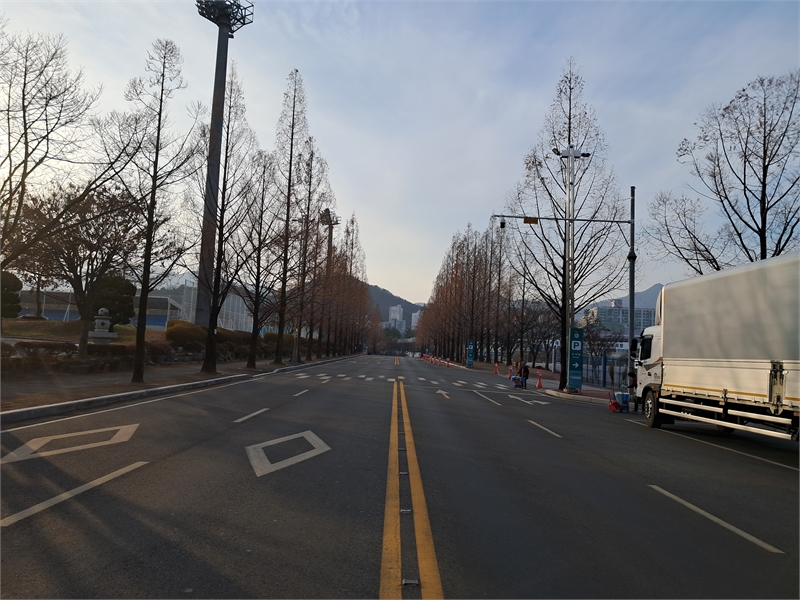 그 분주하던 드녋은 주차장, 황량한 월드컼경기장 앞 주변도로