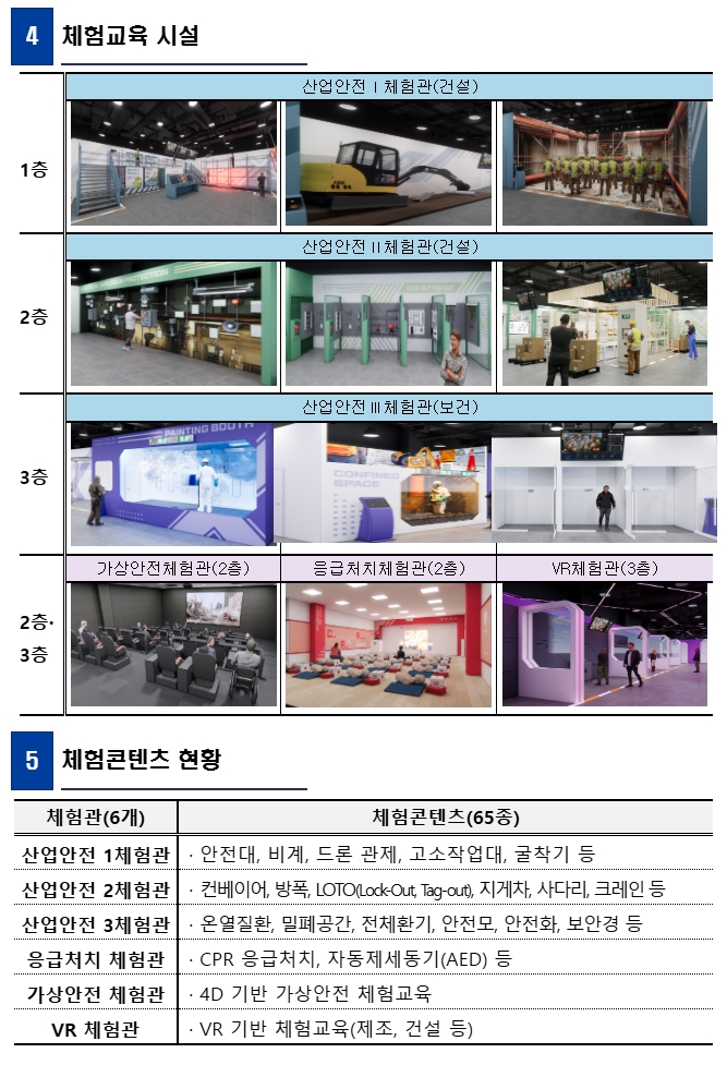 □ 주요시설: 산업안전 1·2·3체험관, 응급처치체험관, 가상안전체험관,